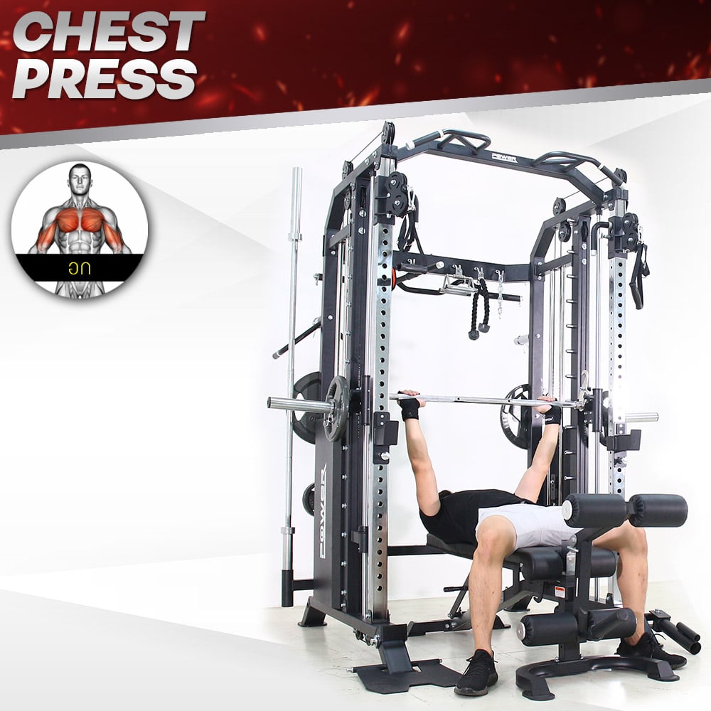สุดยอดนวัตกรรม เครื่องออกกำลังกาย Smith Machine เกรด Commercial ใช้งานในฟิตเนส บริษัท โรงยิมได้ Mega Trainer Series รุ่น M9 จาก POWER REFORM™ ผู้นำนวัตรกรรมด้านเครื่องออกกำลังกาย เครื่องเดียวเหมือนยกเอายิมมาไว้ที่บ้าน มีน้ำหนัก Weight Stack ในตัวให้ใช้มากถึง 180 กก. เป็นทั้ง Smith Machine, Power Rack, Crossover, Row Machine, Leg Press, Lat Pull Down, Dip Station, Core Trainer, Weight Storage และอื่นๆ พร้อมอุปกรณ์เสริมในชุด 15 รายการ และสามารถซื้ออุปกรณ์เสริมเพิ่มได้ในราคาพิเศษ